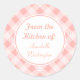 Soft pink gingham decorates these custom kitchen stickers. Change the name to personalize these stickers. Use these stylish stickers for gifts, baking, etc....The design is from original art.