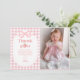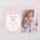 Pink Gingham Peach First Birthday Photo Thank You Card