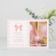 Pink Gingham Pink Bow Birthday Photo Invitation