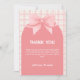 Pink Gingham Plaid Arch Bow Baby Shower Thank You Card