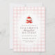 Pink Gingham Strawberry Berry 1st Photo Birthday Invitation