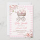 Elegant Blush Pink Sweet Stroller Vintage Girl Baby Shower Invitation