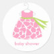 Adorable little dress with a pink giraffe print. So sweet for baby shower favour stickers.