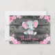 Pink Rustic Girl Elephant Baby Shower Thank You cards with blank inside side for your custom notes.