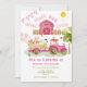 Pink girl Farm animals 4th birthday party Invitation