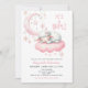 Little lamb pink Girl Baby Shower Invitation with pink moon and stars and a cute pink baby lamb sleeping on a pink cloud.
