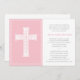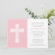 This elegant, modern girls First Holy Communion invitation features a pretty white cross against a pink background. Easily customize with your communion or baptism details.
