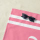 Personalized beach towel design for a girls' weekend vacation getaway features a custom first name in modern script writing framed by coastal stripes, with custom text for the occasion. The pretty pink background colour can be modified. Please visit our shop for other colour options.
