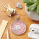 This cute girly basketball keychain features a pink, digitally textured basketball graphic with overlying dark grey and white text - easily customize this keychain with the player's name in a signature style font atop the player's jersey number in a varsity letter style font - by katz_d_zynes