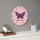 Pink girly wall clocks with pretty butterfly and monogram space you can add a name or initials on the clock face. Decorative wall decor clock design for girls, kids, or college dorm rooms, or a baby girl room. Best clocks for babies, girls, nature lovers or butterfly lovers. Colours include pink, peach, white, and brown.