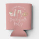 Pink girly modern cocktail script bachelorette can cooler party design.