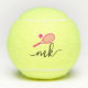 Personalized tennis balls printed with custom script monogram initials in a feminine girly and modern pretty calligraphy handwritten font. Any women's tennis player would appreciate the elegant look on these modern monogrammed practice balls.