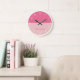 Designed with two shades of pink this girly wall decor clock has fancy clock face numbers that add some style. Created for a teenage girl or baby room with monogram space you can personalize with a name or monogram initials to make this personal.