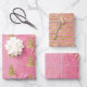 Pink Glam Gold Christmas Tree Stripes Sparkle Wrapping Paper Sheet