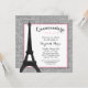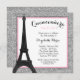 A glamourous Paris themed Quinceanera invitation. Show in pink, silver and black. Featuring an Eiffel tower illustration with a faux silver glitter background. Designs are flat printed graphics - NOT ACTUAL GLITTER. Graphics by JW Illustrations at MyGrafico