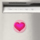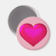 This magnet features a shapely pink heart with a glass-like appearance on a purple background.