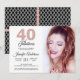 A chic, elegant, 40th birthday photo invitation you can personalize and send out for your fortieth birthday party celebration. The words "40 and Fabulous" in blush pink glitter and black are set using modern typography. Simply add your own personal details and your own photo. There's a black and white diamond pattern on the back of the card with blush pink glitter ribbons. If you need any help or matching products, please contact us through our store.