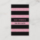 Modern elegant pink glitter and black stripes, geometric design, business card template.