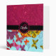 Pink Glitter and Colourful Butterfly Monogram Binder