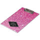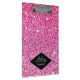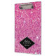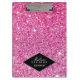 Coordinates with the Pink Glitter and Glamour Beauty Business Card Template by 1201AM. A bright pink glittery background image provides a glamourous backdrop to this personalized clipboard design. Your name or business name is elegantly styled in a faux silver trimmed nameplate on the front. © 1201AM Design Studio