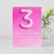 Pink Glitter Balloon 3rd Birthday for Girls Invitation