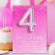 Pink Glitter Balloon 4th Birthday for Girls Invitation