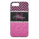 Pink Glitter Black Chevron Monogram Girly Case-Mate iPhone Case