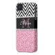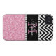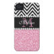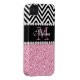 PINK GLITTER BLACK CHEVRON MONOGRAMMED Case-Mate iPhone CASE