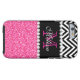 PINK GLITTER BLACK CHEVRON MONOGRAMMED Case-Mate iPhone CASE