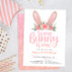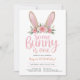 Pink Glitter Bunny Floral First Birthday Party Invitation