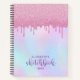 This personalized girly 8.5 x 11 sketchbook has pink glitter drips and purple text on a holographic foil background. Customize the sketchbook with the name of your choice to make someone feel extra special. Makes a fun gift for birthdays or for Christmas. Comes in a variety of colours. Designed for you by Blackberry Boulevard.