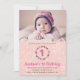 Elegant 1st birthday party invitation featuring a beautiful floral wreath design. Simply add your event details on this easy-to-use template and adorn this card with your child's favourite photo to make it a one-of-a-kind invitation. Flip the card over to reveal a pink glitter texture on the back of the card.