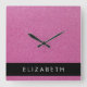 Pink Glitter, Glitter Background, Your Name Square Wall Clock