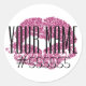 Customize your Pink Glitter Gloss Stickers with your information, and your choice of background colour!