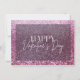 Custom Valentine's Day card featuring pink glitter with "Happy Valentine's Day" in mixed typography. Available for print and [↓ INSTANT DOWNLOAD ↓] as JPG, PNG, and PDF files to share with your Valentine through messaging, email, and print from home.