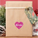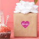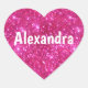 A pink, heart-shaped sticker featuring a pink glittery pattern with a child's name on - ideal for kid's birthday parties or when a fancy name tag is required, for games, in the school room, children's craft activities and more. The name can be customized to suit - or removed altogether if desired.