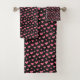 Add some personal style to your bathroom decor with a custom-made towel set. Pink Glitter Hearts on Black Trendy Pattern Design Bathroom Towel Set. Great gift idea.
