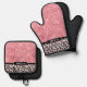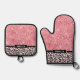 Pink Glitter Leopard Print Shimmer Personalized Oven Mitt & Pot Holder Set