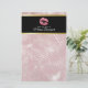 Stationery paper with a background composed with a modern trendy rose gold tropical leaves pattern. Layered over top is a black frame with a gold gradient border, inside are pink glittery lips.