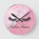 Pink, Glitter, Marble, Stylist, Salon Round Clock