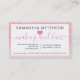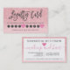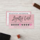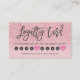 Elegant chic pink glitter sparkles script makeup hair pink heart loyalty card with modern hand lettering style brush typography on white , a simple, professional and minimalist card. offer 10 treatments and discount to your customers.