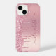 Custom elegant and girly iPhone case featuring dripping pink faux glitter on a pink faux foil background. Personalize with your name in a stylish trendy pink script with swashes.