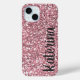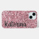 Pink Glitter Personalized with Your Name. Girly, Pretty Mobile Phone iPhone 15 Case.