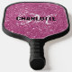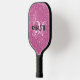 Stylish pink glitter white script monogram black name women's pickleball paddle. Personalize with your name and initial.