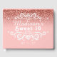 Elegant, glam faux pink glitter Sweet 16 guest book will become a treasured memento- Background on front, spine, and back is a soft, pastel pink glitter ombre look that fades to a solid, pretty pink. Front has elegant lettering with personalized name of birthday girl and date underneath in white. Framed by antique, vintage style scroll borders on top and bottom. Note: All images are printed. Not actual glitter. Reads GUEST BOOK (with personalized name) on the spine in modern letters. Trendy, pink glitter birthday style with a touch of elegance. Click Customize option to change text colours, size, and font styles or placement. Easy to customize for other special occasions or events like bachelorette parties, retirement celebrations, wedding showers, etc. Don't forget to add personalized name on the spine! Visit my Zazzle.com/angela65 shop for matching pink glitter decor and more unique, personalized guest books.
