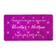 Custom pink purple glitter wedding wine or spring water bottle labels. Personalized elegant waterbottle sticker template with sparkly background texture. Fancy script typography for names of bride and groom and thank you message. Use as classy table decoration or thank you favour for guests at the party. Includes name or monogram plus date of marriage. Faux glittering design with sparkly sparkles and glittery glimmers. Also good for fancy engagement or anniversary gathering. Create your own natural mineral water labels with this shiny DIY template. Customizable background colour. Glamourous look accessories.