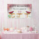 About the design: this is a pink glitter texture with a light grey background, the banner is decorated with random gold streamers.