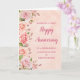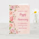 Happy wedding anniversary card for goddaughter and her husband with elegant pink watercolor roses and spring greenery, with a faux rose gold pattern.