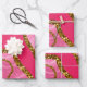 Pink & Gold Agate Geode Glitter Wrapping Paper Sheet