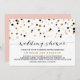 Modern and festive wedding shower invitation featuring blush pink, copper-gold, black confetti dots. Personalize by adding names, date, time and other event details.